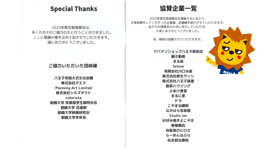 公演で配布されるパンフレットに弊社とFC NossA八王子を掲載して頂きました✨